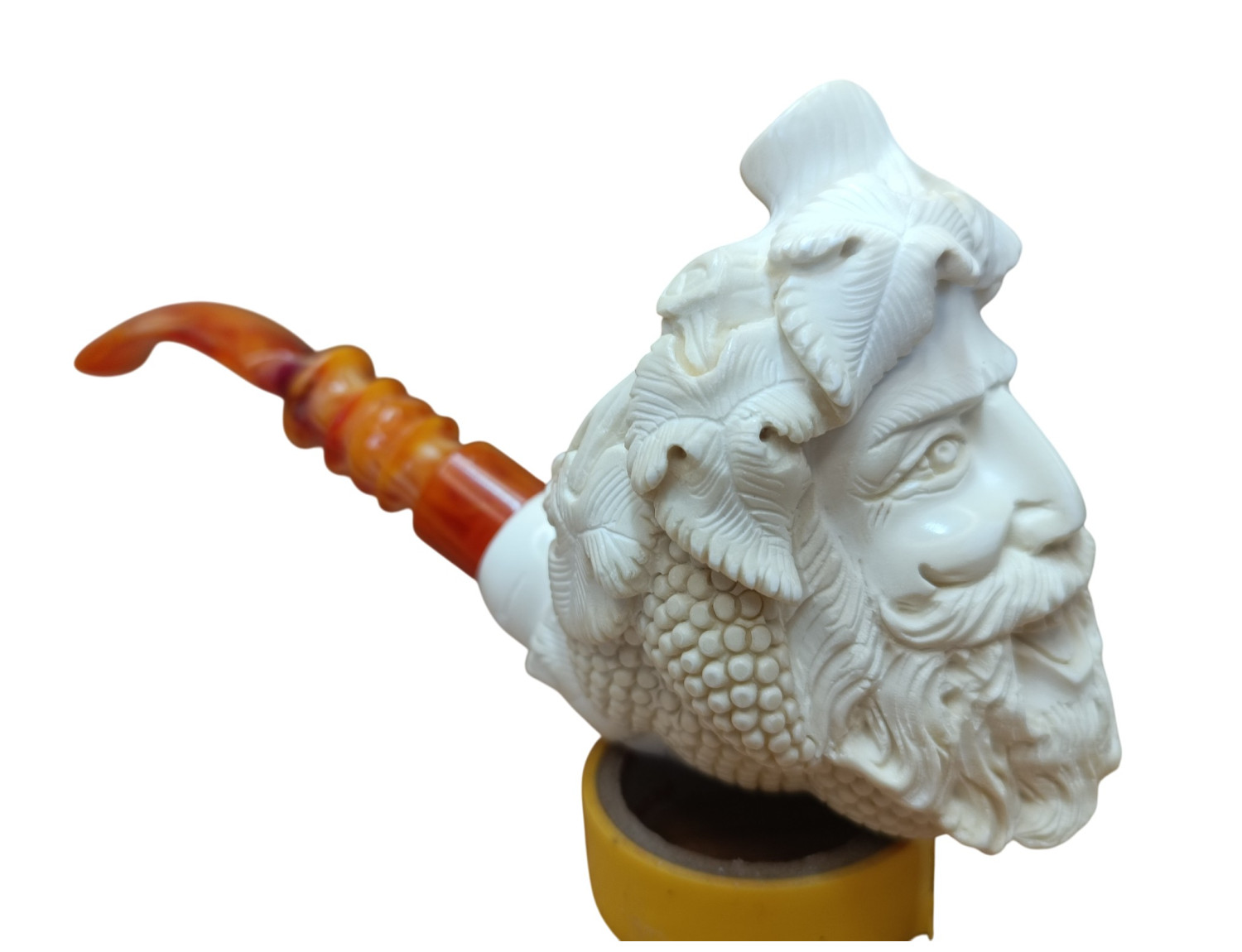 Sculpting a god requires patience, reverence and confidence. Face carving in meerschaum is precise — one wrong line breaks humanity. Hair must flow, but not melt; vines must twist, but not tangle. This pipe carries harmony — every detail balanced like rhythm in theatre.