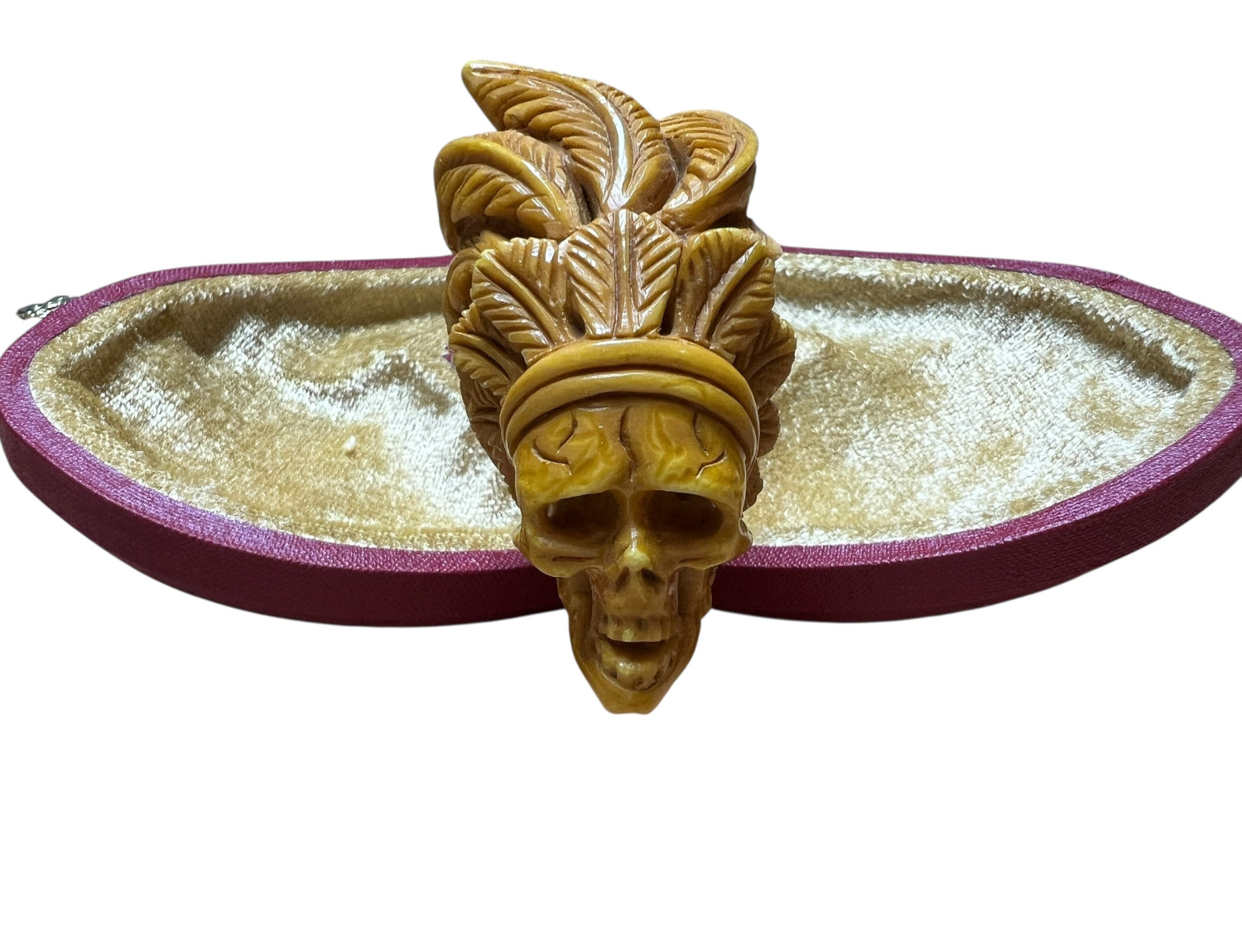 Meerschaum color change is history you can see. With a Tribal Skull carving, the transformation looks like story told over decades: