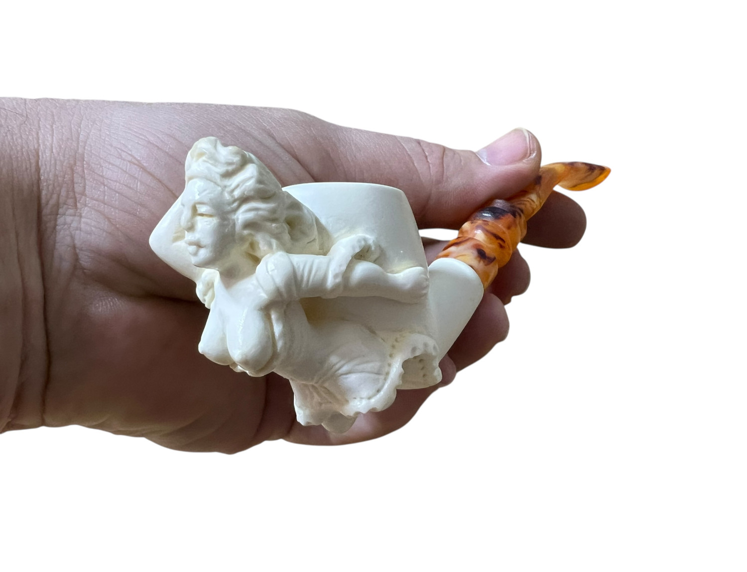 Each Figural Meerschaum Pipe – Seated Lady is handcrafted by experienced Turkish meerschaum artisans. Figurative carving represents one of the highest skill levels in meerschaum craftsmanship, requiring patience, anatomical understanding, and artistic judgment.