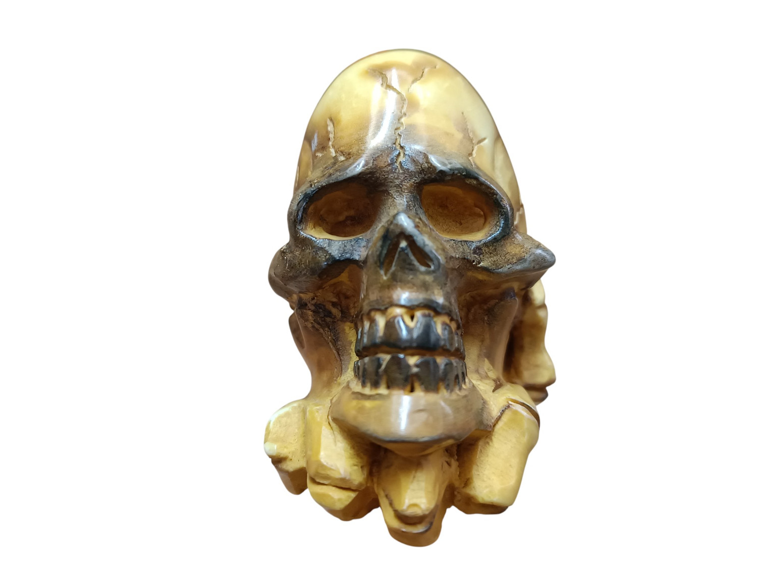 - Hand-carved skull design